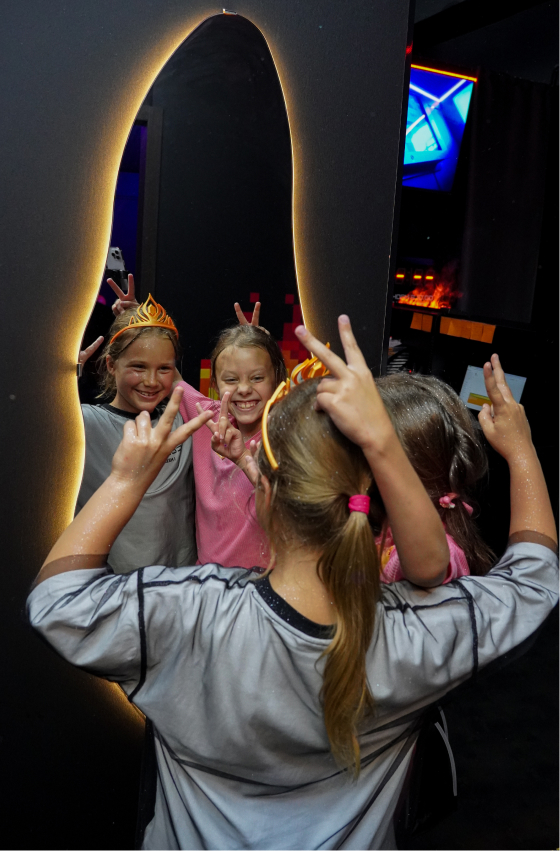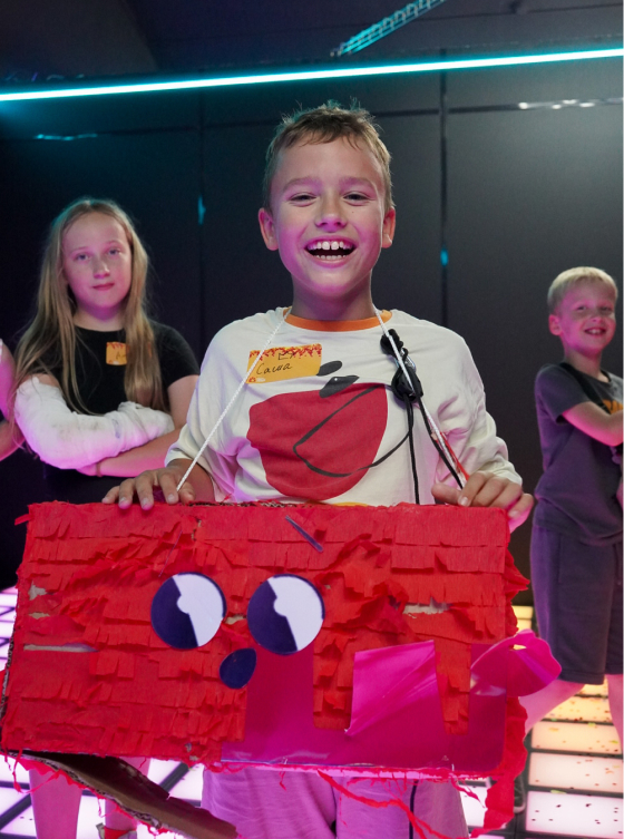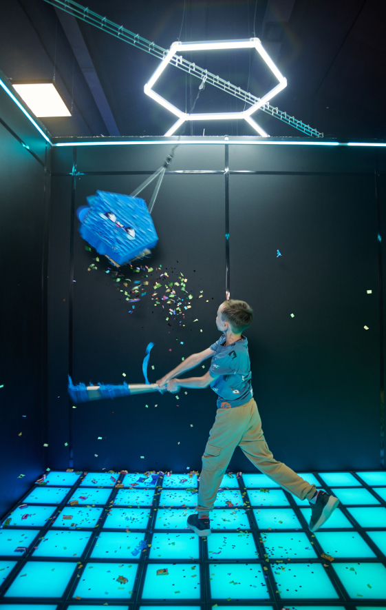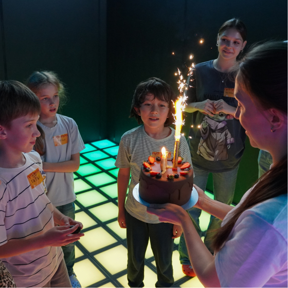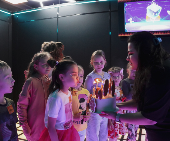 Такой важный день, чтобы выпустить все эмоции и «оторваться по полной» на светящемся полу. Играем на арене, делимся на команды, устраиваем мини-турниры и финальные баттлы отличников. Администраторы координируют процесс, подсказывают правила, чтобы всем было весело и безопасно.